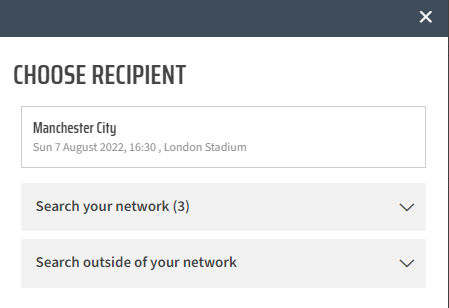 - Once the supporter has been selected, you will see the following screen. You will have the option to confirm and forward additional tickets or review your order to add this ticket only to your basket in preparation for Ticket Forwarding.